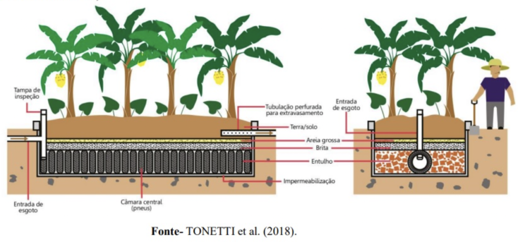 “Os patógenos são tratados no sistema, sem alcançar os lençóis freáticos. Para cobrir a superfície do solo, dentro da TEvap são utilizadas palha e folhas secas”, diz.